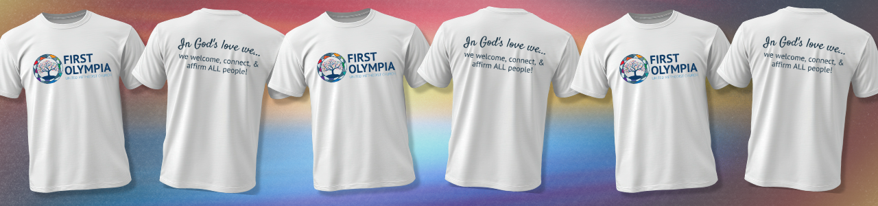 First United Methodist Church of Olympia is proud to be a reconciling minisrty working to make the global church fully inclusive of our LGBTQ+ family, friends, and neighbors. In honor of our annual involvment in the Olympia's Capitol City Pride Festival, we're offering a new variation of our church t-shirt with a rainbow tree on the front. The shirt itself is plain white.
